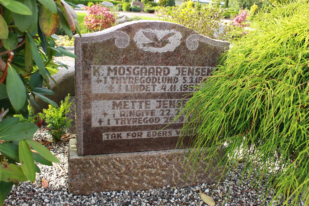 PåThyregod kirkegård er mine bedsteforældre Mette og Kreten Mosgaard Jensen, samt flere af deres børn begravet.